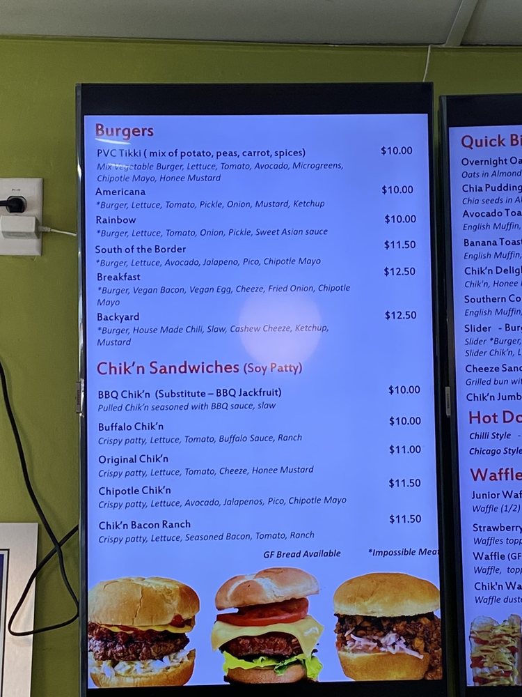Chikn honee mustard on toasted english muffin. Chikn contains gluten GF bread option 2.50