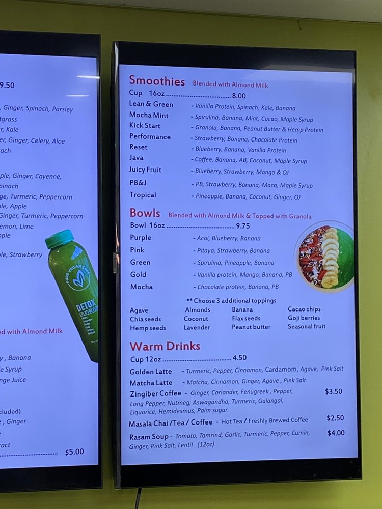 Don’t miss their popular smoothies, like the refreshing Java Banana or the energy-packed Lean Green, each priced at just $8.00. For warm drinks, the Golden Latte provides a delightful blend of turmeric and spices, perfect for a cozy afternoon.